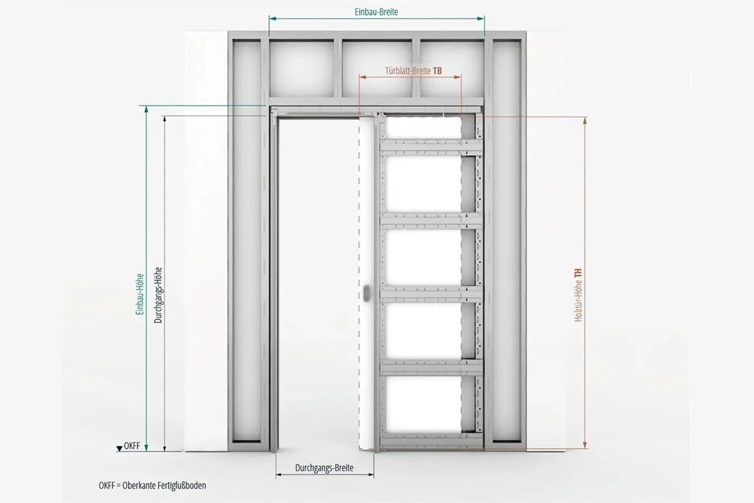 - Dank der WINGBURG Einbaukästen kann das Türblatt vollständig unsichtbar in der Wand versenkt werden.